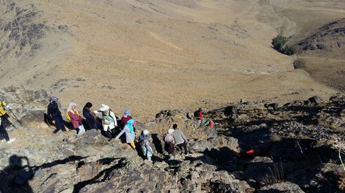 اعضای تیم با دورنمای قله جاچکه چه کمه