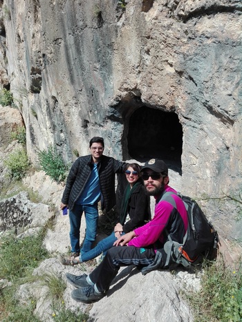 ابتدا از گور دخمه که در دل کوه بود، دیدن کردیم.در این مکان دو گور دخمه وجود دارد که ما گور دخمه یک طبقه را رفتیم چون یک گور دخمه دو طبقه هم آنجا هست که باید با وسایل فنی سنگنوردی داخل آن رفت که بنده چند سال پیش هم آنجا رفته ام.