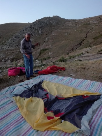 تیم ما پس از عبور از شهرهای زنجان-بستان آباد- اهر به کلیبر رسیدیم و از آنجا بسمت بالا حرکت کردیم در بین راه از یک جاده فرعی خاکی پیش ایل نشینان شاهسون رفته و همانجا چادر زدیم.