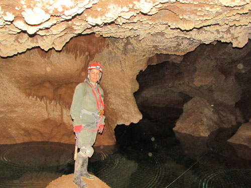 در حال ورود به تالار اشک و دریاچه زیبای غار