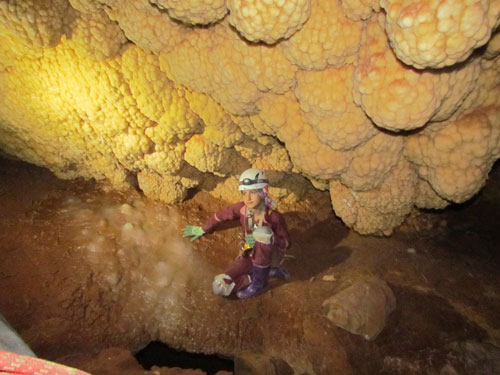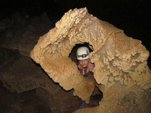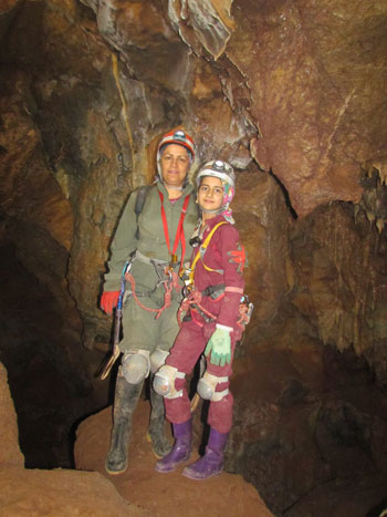 همراه اسراء در کنار یکی دیگر از سنگهای دیدنی غار