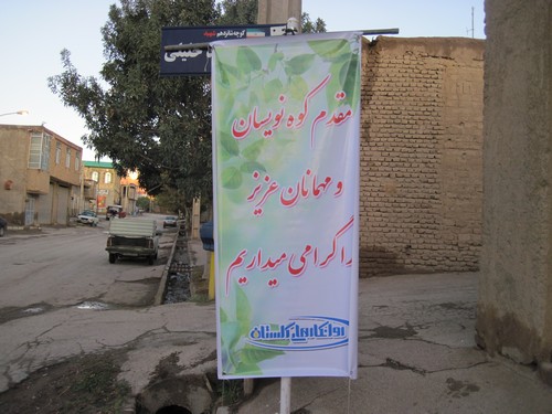 آدرس را خیلی زود پیدا کردیم سر کوچه و منزل جناب غلامی (میزبان برنامه)بنر صعود نصب شده بود.