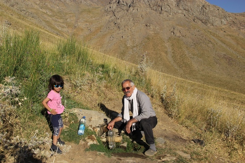طیب و ارغوان دختر فردین در کنار آب چشمه نزدیک پناهگاه