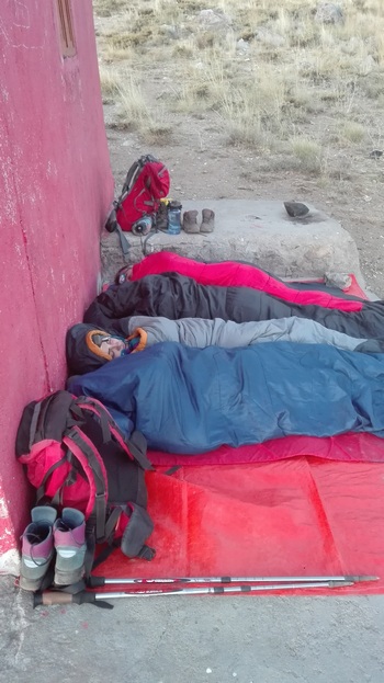 تعدادی داخل پناهگاه و عده ای بیرون خوابیدیم اما باد همچنان زوزه کشان تا نزدیکی صبح ادامه داشت.