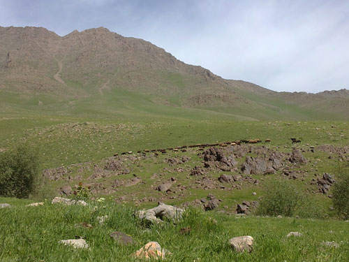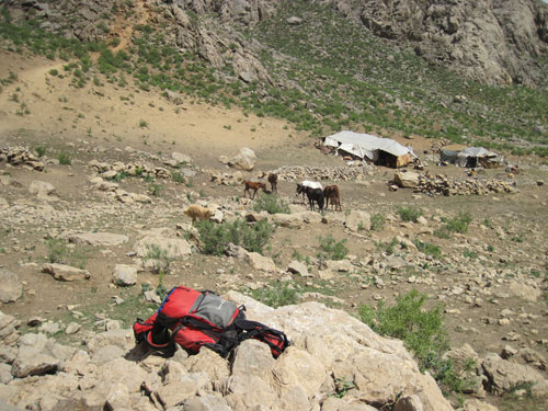 در بین راه آقای حیدری با همه محبت و خلوص نیتش، اطلاعاتی را که در باره کوههای منطقه داشتند، برایمان توضیح می دادند. تا اینکه ساعت ۸ به محوطه وسیعی که عشایر آنجا چادر زده بودند، رسیدیم و سر چشمه نشسته و صبحانه را صرف کردیم.