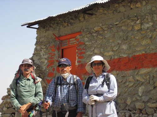 پس از ساعتی استراحت و بر داشتن آب، راهی پناهگاه شدیم. آقای حیدری توضیح دادند که چقدر برای ساختن این پناهگاه که در ارتفاع ۲۸۵۰ متری واقع شده، زحمت کشیدند اما در اثر زلزله و بی توجهی عده ای تقریبا تخریب شده بود البته فعلا قابل استفاده بود اما احتیاج به تعمیر زیادی داشت.