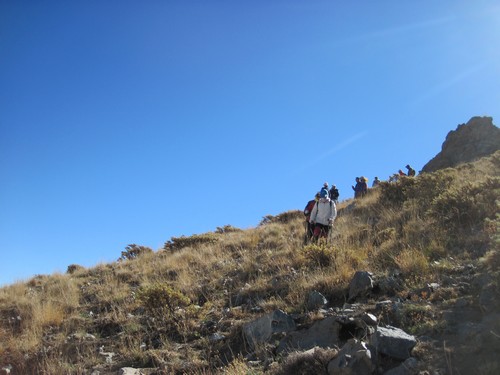 در نیمه باغها به یک دوراهی رسیدیم که بنا به تشخیص سرپرست از مسیر دست چپ که منتهی به دره می شود بسمت قله حرکت کردیم.