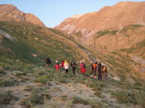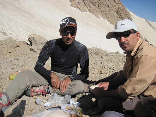 با توجه به محدودیت زمانی که داشتیم، با خانم خسروانی( سرپرست گروه بامداد) صحبت کرده و گفتم قراره که ما صبح زود راهی قله شویم اما راهنما نداریم ایشان هم بیان نمودند که دو نفر از همنوردانشان ( آقایان: هاشم خسروانی و محمود رحمانی) با ما بیایند و تیم خودشان بعد از ما حرکت کنند.