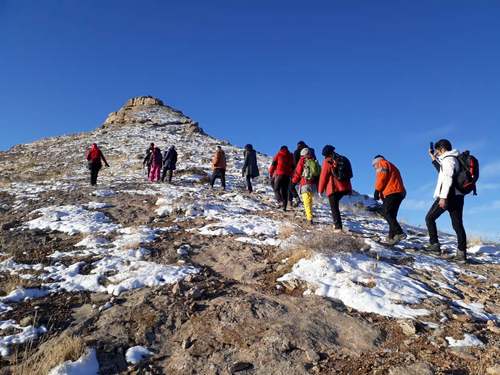 پس از عبور از معدن به مسیر پاکوب منتهی به قله رسیدیم.