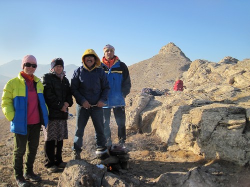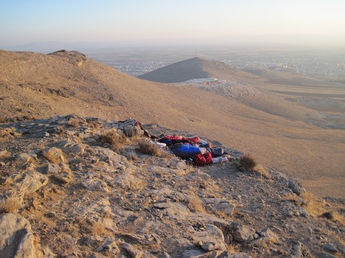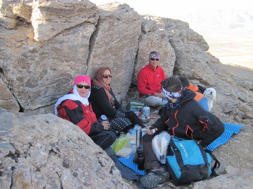 تعدادی از همنوردان شب قبل نزدیک قله خوابیده بودند و شب بسیار سردی را سپری نموده بودند.