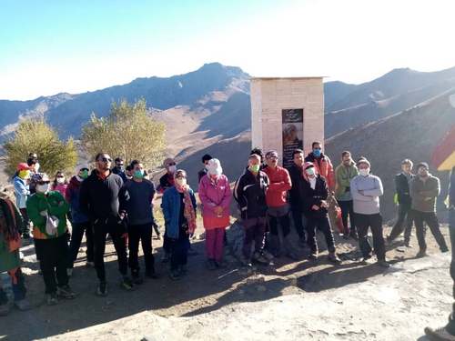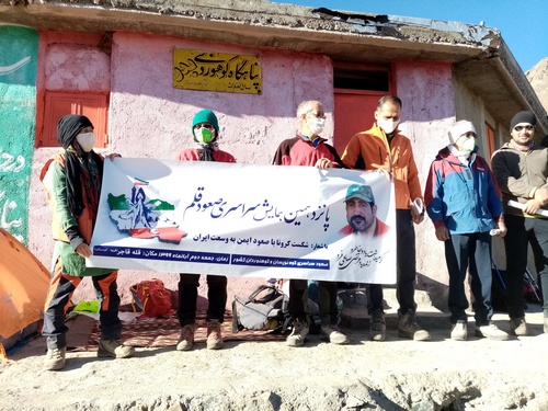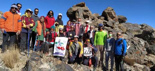 اعضای باشگاه قاجر با بنر باشگاه و صعود قلم در قله