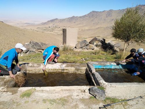 همنوردان حوضچه های کنار پناهگاه را لایروبی کردند.
