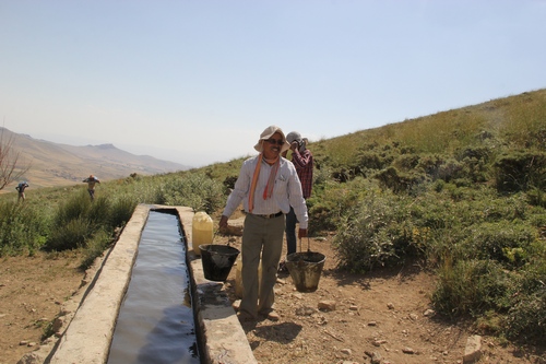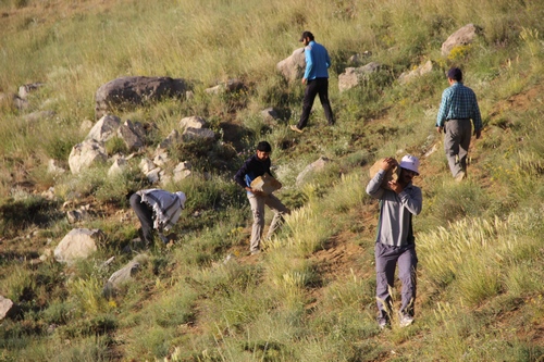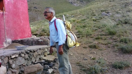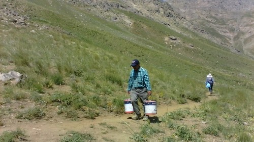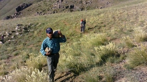 ماشین ها را تا آخرین نقطه جاده خاکی نزدیک خانه باغی یکی از روستاییان برده و مصالح را همانجا گذاشتیم.(از اینجا تا پناهگاه حدود ۴۰ دقیقه بود)