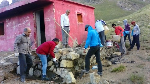 تعدادی از همنوردان کیسه های سیمان را از شیب ها تا پناهگاه می آوردند و عده ای دیگر ماسه می کندند و بعضی ها هم آب را از فاصله حدود ۱۰۰ متری بالا می آوردند.