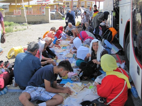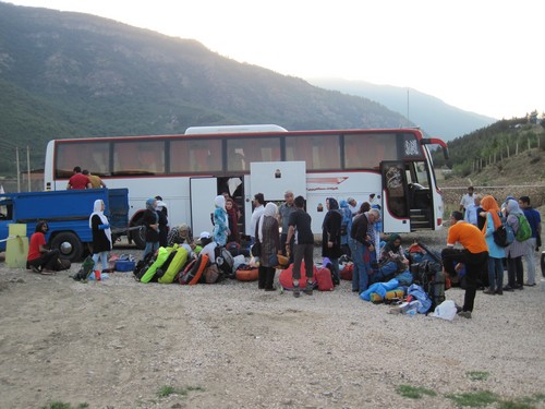 ساعت۶:۳۰ دقیقه اتوبوس رسید و پس از جابجایی مسافران و وسایل بعد از یک ربع به راه افتادیم.