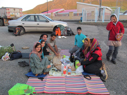 ابتدا صبحانه را در کنار پایگاه امداد و نجات هلال احمر که در ۲۰ کیلومتری سنندج است، صرف نمودیم