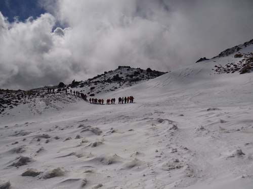 ساعت ۳ بیدار شده و کوله های حمله را آماده کرده و ساعت ۴:۱۰ در هوایی سرد به راهی قله شدیم.
