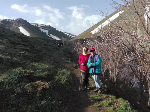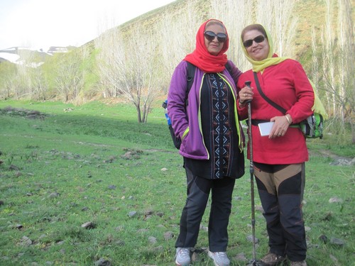همراه روژان همنوردخوبم در کنار درختی که شکوفه های نو شکفته اش به رویمان لبخند می زدند.