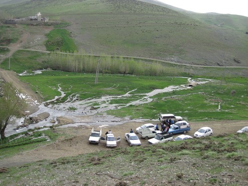 بعد از حدود یک ساعت پس از گذشتن از روستای اوریه به آخرین روستا(تازه آباد رسیدیم) بجهت خاکی بودن جاده و باران شب گذشته جاده تقریبا نامناسب شده بود و بعضی از قسمت ها کلا وسط جاده آب جاری بود.