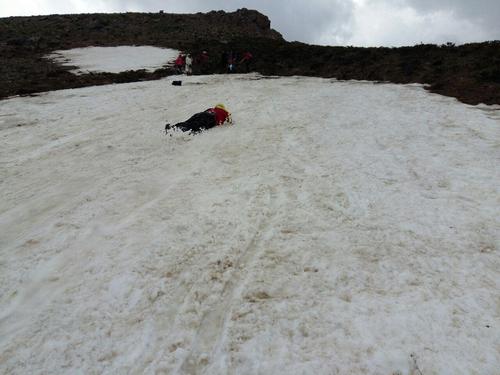 در بین مسیر مدتی هم روی برفها سر خوردیم که بنده نحوه ترمز گرفتن رو شیب برفی را برای همنوردان جدید توضیح داده تا لذت بیشتری از این قسمت برنامه ببرند.