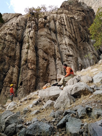 همنوردانی که می خواستند سنگنوردی کنند،چندین مسیر را ازصبح بررسی کردند.