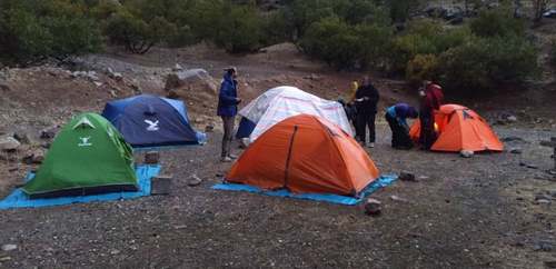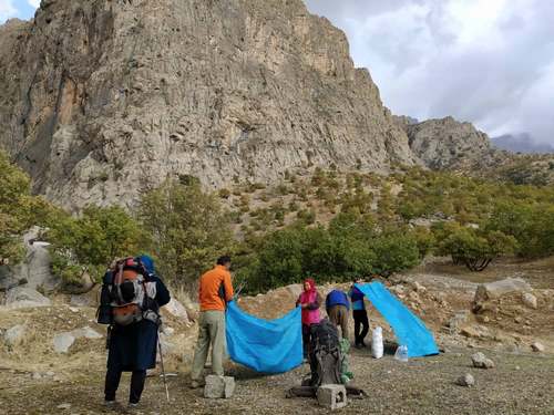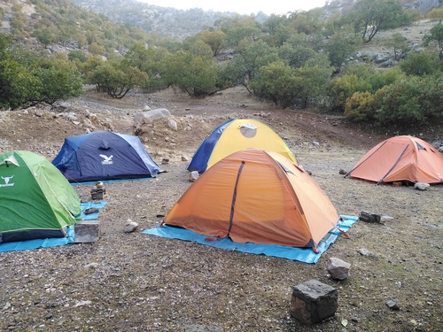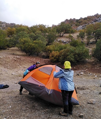 پس ازحدود ۲۰ دقیقه به محل کمپ رسیده و زیر باران چادرها را برپا کردیم.