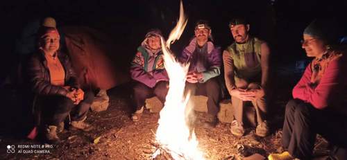 کم کم ستاره ها در آسمان جلوه گری می کردند و با پیدا کردن تکه چوبهای خشک آتشی درست کرده و ساعتی را با همنوردان کنار آن نشستیم و شب خاطره انگیزی را سپری کردیم.
