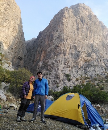 پس از صرف صبحانه تیم سنگنوردی جهت تمرین رفتند، ما هم قرار شد به دره روبروی سمت چپ کمپ بریم.