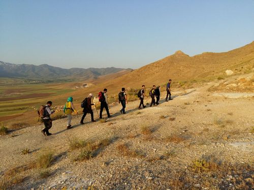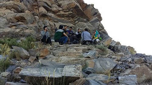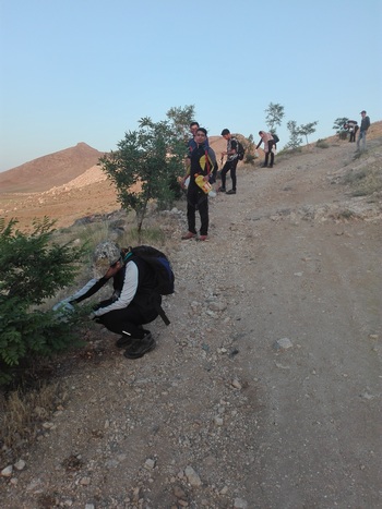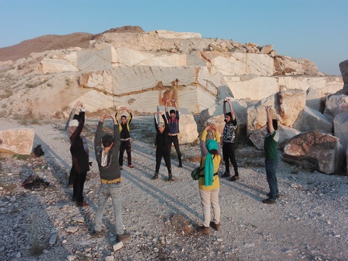 در ابتدای معدن که بعد از مسیر سبز است، نرمش صبحگاهی را انجام دادیم.