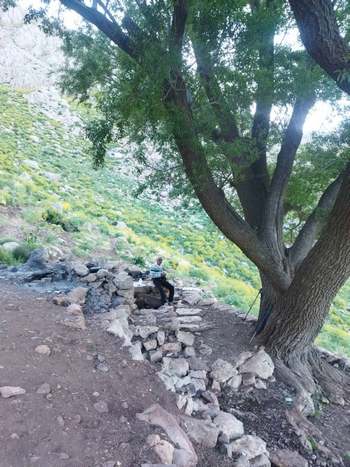 در انتهای مسیر جیب رو بسمت چپ رفته و ساعت ۶:۱۵ به چشمه آب گوارایی رسیدند که زیر درخت بید بود و این درخت کهنسال زیبایی منطقه را دوچندان کرده بود.
